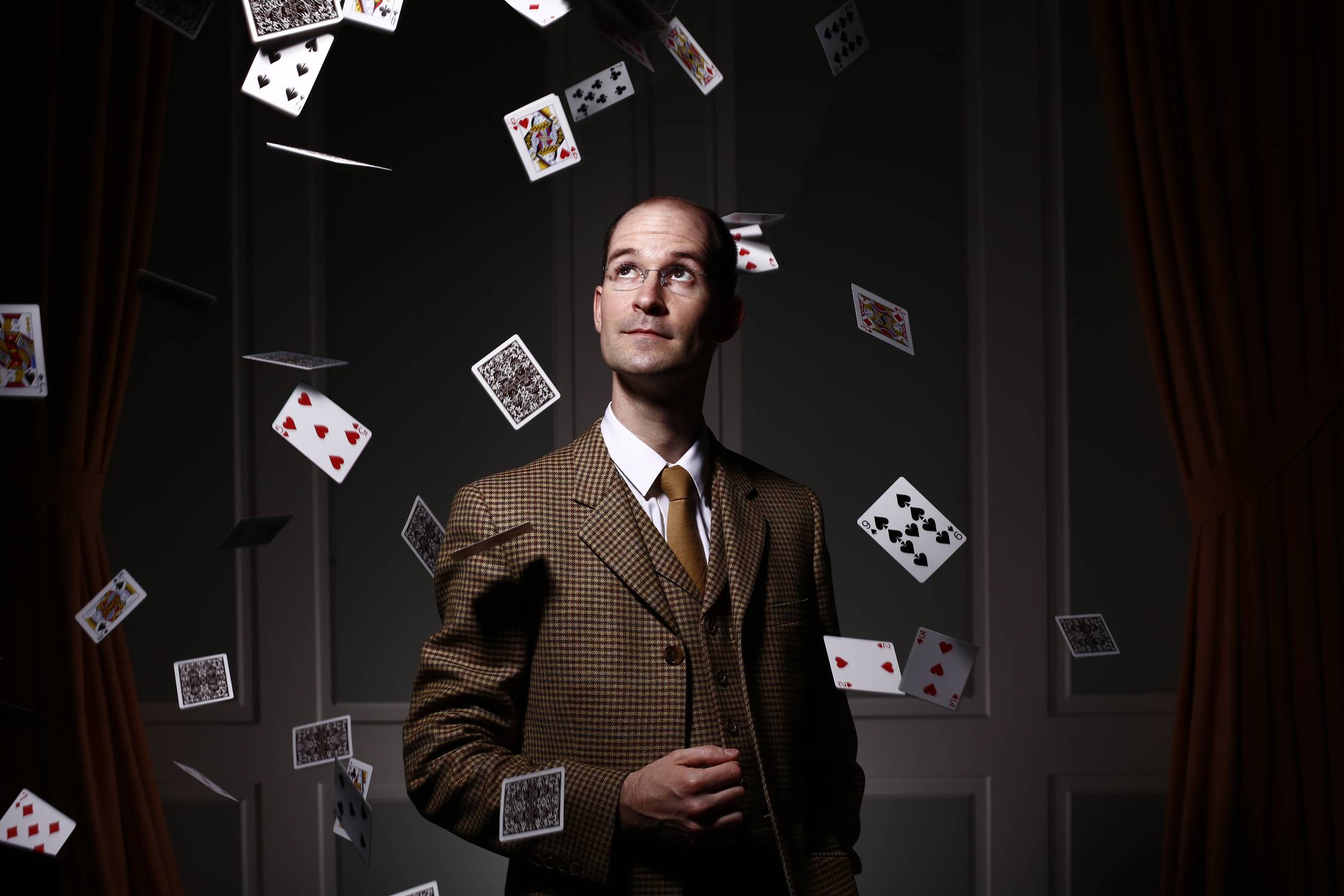 Pit Hartlings Shows kommen ohne Bühnennebel und aufwändige Requisiten aus: Ein Weinglas, ein Geldschein, einige Bücher – viel mehr benötigt „Deutschlands dünnster Magier“ nicht, um einen ganzen Saal um den Finger zu wickeln und erwachsene Menschen für einen Moment in staunende Kinder zu verwandeln.