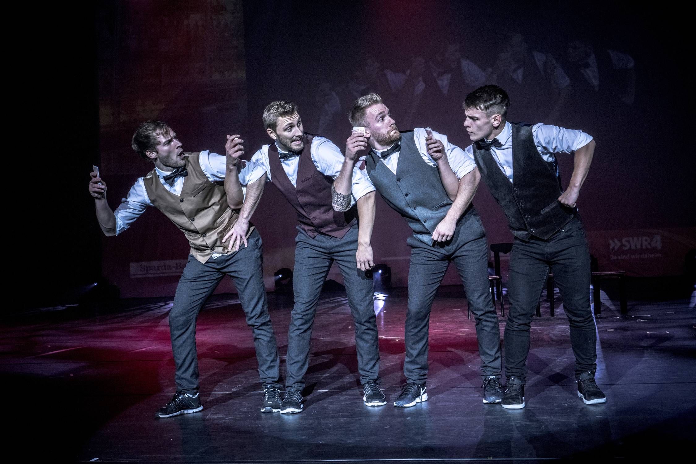 Die Tricking Show tritt standardmäßig mit vier Artisten auf. Je nach Anlass und Kundenwunsch sind 2-6 Performer problemlos möglich. Sprechen Sie uns für Beratung gerne an, wir benötigen 5x5 m Platz auf der Bühne für unsere Sprungelemente, sind jedoch flexibel in der Planung.