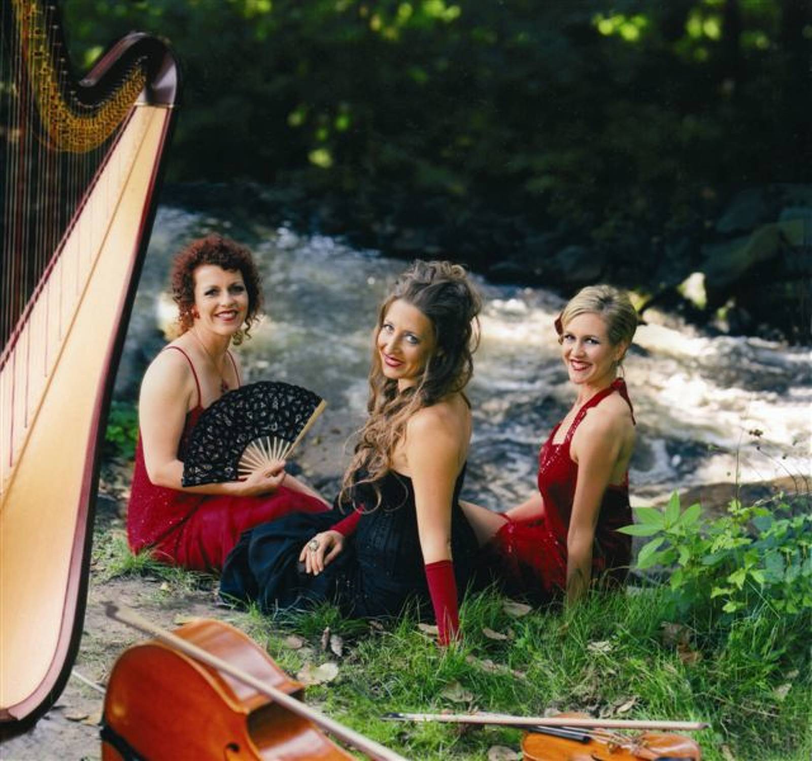Die Aschaffenburger Violinistin Daniela Reimertz, Anne Kox-Schindelin aus Würzburg an der Harfe, und Birgit Förstner am Cello präsentieren einen mitreissenden Klang aus Klassik, Zigeunermusik, Klezmer und dem Tango. Was die Genres verbindet ist die Leidenschaft im doppelten Sinne: tiefgreifende Sehnsucht und überschäumendes Temperament - Ein Feuerwerk der Gefühle.