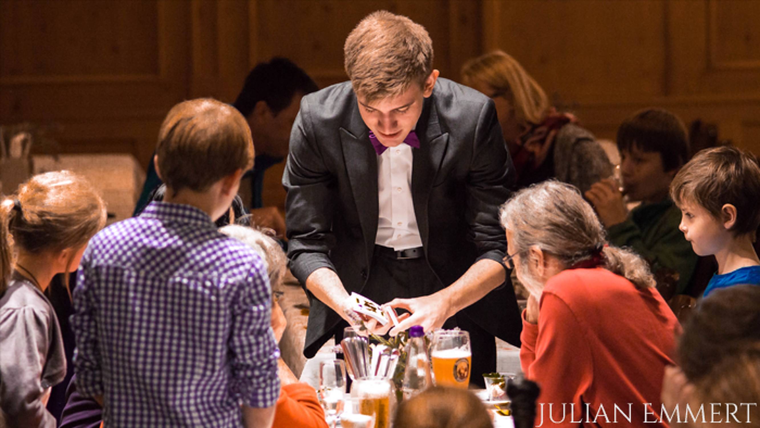 Julian: 2 Jahre lang genoss Julian eine Zauberer-Ausbildung auf der Zauberakademie-Deutschland, bis er in den Magischen Zirkel von Deutschland e.V. aufgenommen wurde. Seither zaubert er seinem Publikum als Spezialist der Close-Up Magie ein Lächeln in das Gesicht, dass nur durch ein regelmäßiges Staunen unterbrochen wird.