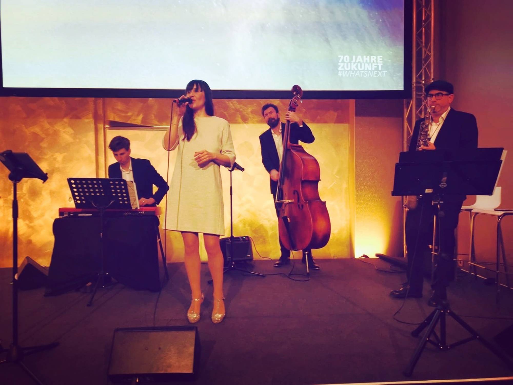 Vertrauen Sie bei der stilvollen musikalischen Untermalung Ihres Events auf die lange Erfahrung des Trios Dreiklang. Genießen Sie Jazzklassiker im Stil des legendären Nat „King“ Cole und luftige Bossa Novas, die an Frank Sinatra, Cole Porter und Billie Holliday; kurz: die Roaring Twenties erinnern- als konzertanter Glanzpunkt oder als dezente musikalische Untermalung verleiht das Ensemble professioneller Jazzmusiker um Nürnberger Sprecherin & Sängerin Sabine Seide Ihrem Event, Messestand, Bankett, Cocktailparty, Dinner oder Ihrer Hochzeit die besondere Note!