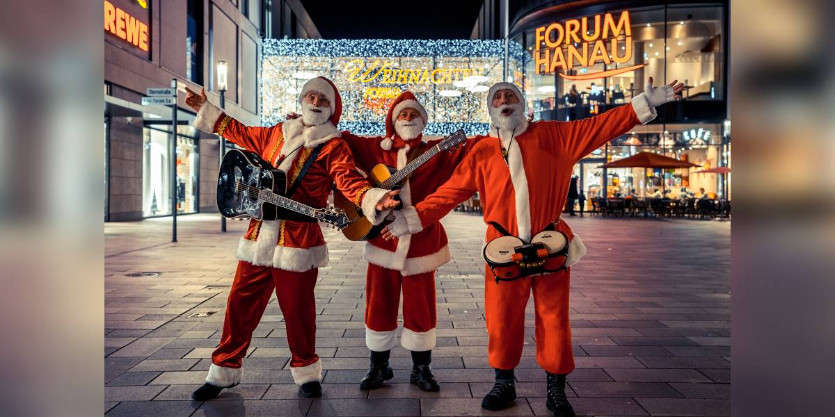 Die Walking Santas treten als Trio auf. Auch ein Quartett mit zusätzlichem Cajon-Spieler ist möglich.